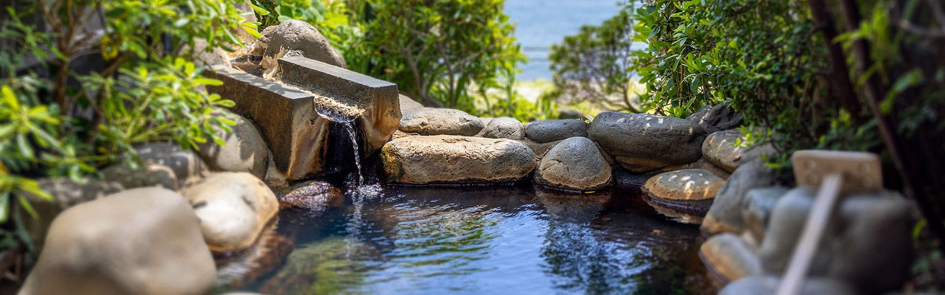 自家源泉を持つ「片瀬館ひいな」の館内には趣の異なる9種の温泉があり湯巡りを愉しむことができます。